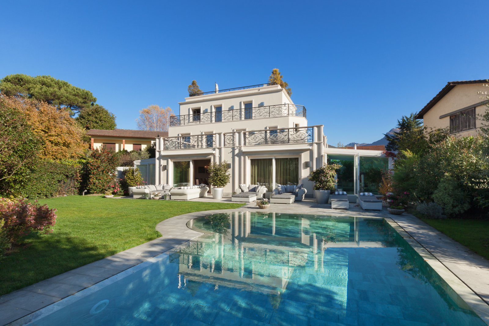Dans un secteur calme et très prisé, cette villa libre de tout vis-à-vis, déploie tout son charme sur 3 niveaux.. . En rez-de-chaussée, deux belles pièces de vie spacieuses et lumineuses de 44 m² et 29m², une cuisine aménagée et équipée, deux belles salles d'eau, un WC, deux grands celliers, un atelier de 20m², ainsi qu'une buanderie pour une surface totale de 136 m² (possibilité de création de chambres ou de transformer ce niveau en appartement indépendant avec son propre accès), une belle et grande terrasse.. . En R+1: Une très grande pièce de vie très lumineuse de 75 m², une cuisine haut de gamme de 16m² entièrement équipée de la marque SIEMATIC avec un cellier attenant de 2m², et un WC indépendant.. . En R+2: Une suite parentale de 20m² avec grand placard mural et salle de bain haut de gamme attenante de 12 m², une deuxième chambre de 15 m², un bureau de 14 m² et une salle d'eau avec WC de 3,50 m².. . Offrant des prestations haut de gamme, cette villa est équipée d'un chauffage au sol ainsi que d'une climatisation réversible (au dernier étage), de volets électriques et centralisés, d'un arrosage automatique pour la pelouse, et d'une alarme anti effraction. . . Tous les niveaux de la maison sont dotés de grandes terrasses (plus de 150 m² au total), et toutes les chambres sont munies de grands placards. Il y a en outre la possibilité de créer d'autres chambres à chaque niveau. . . A l'arrière de la maison se trouve un espace aplani sans vis-à vis (servant de terrain de pétanque).. Le terrain, magnifiquement paysagé, est également sans vis à vis, et les terrasses entourant chaque niveau permettent toutes les expositions possibles. La villa est orientée plein sud et donne sur une grande piscine 9x5 carrelée.. . Ainsi, qu'il s'agisse de sa situation dominante, de la vue offerte, de l'enrochement, des arbres et palmiers majestueux, tout dans cette propriété concourt à ce sentiment de grandeur et de sérénité, à quelques minutes seulement du centre-ville de Nice.